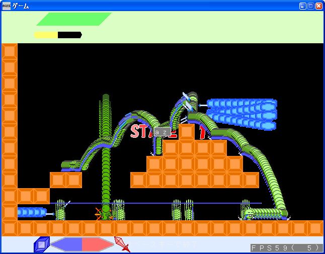 ちなみにTOPの更新履歴にはのってないんですが、デシシの野望アクション版をアクションエディター+に移植しました。設置済みオブジェクトの修正が容易というのと、当たり判定レベル調整による速度アップが狙いです。バグつぶしはしましたが内容は全く変わってません。
